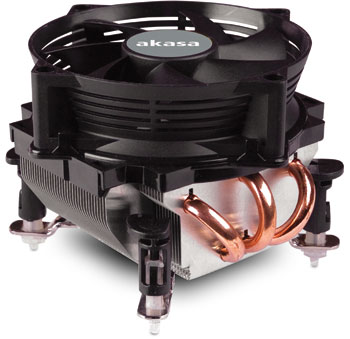 I ordered a basic Akasa heatpipe cooler from Scan for just over a tenner, and have fitted the fan upside down on it, so that it sucks air up from the cooler, and fitted a psu with a huge extractor fan built in, that also sucks air into it and therefore the same direction as the cpu.
