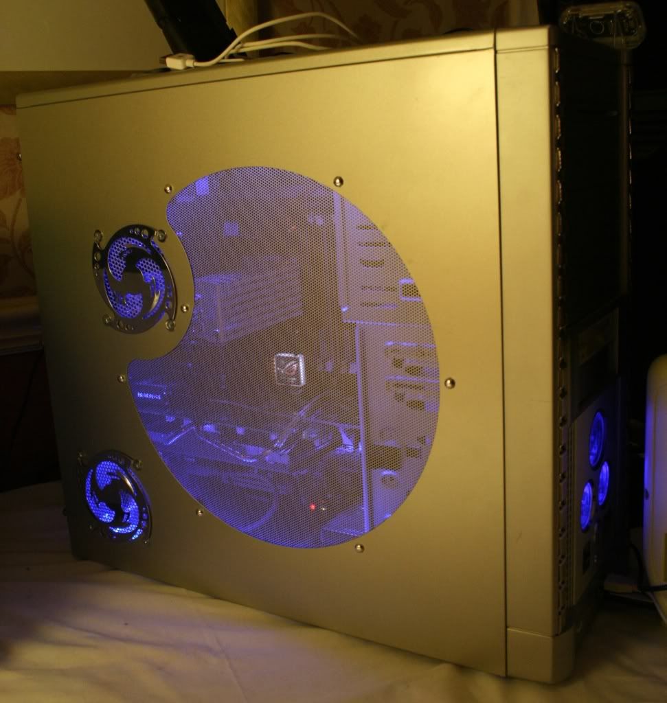 It will have a red led fan above and I've got a white led fan inside the cooler and I'm thinking of using a redish purple cold cathode tube inside it as well. So it should all be lit up.