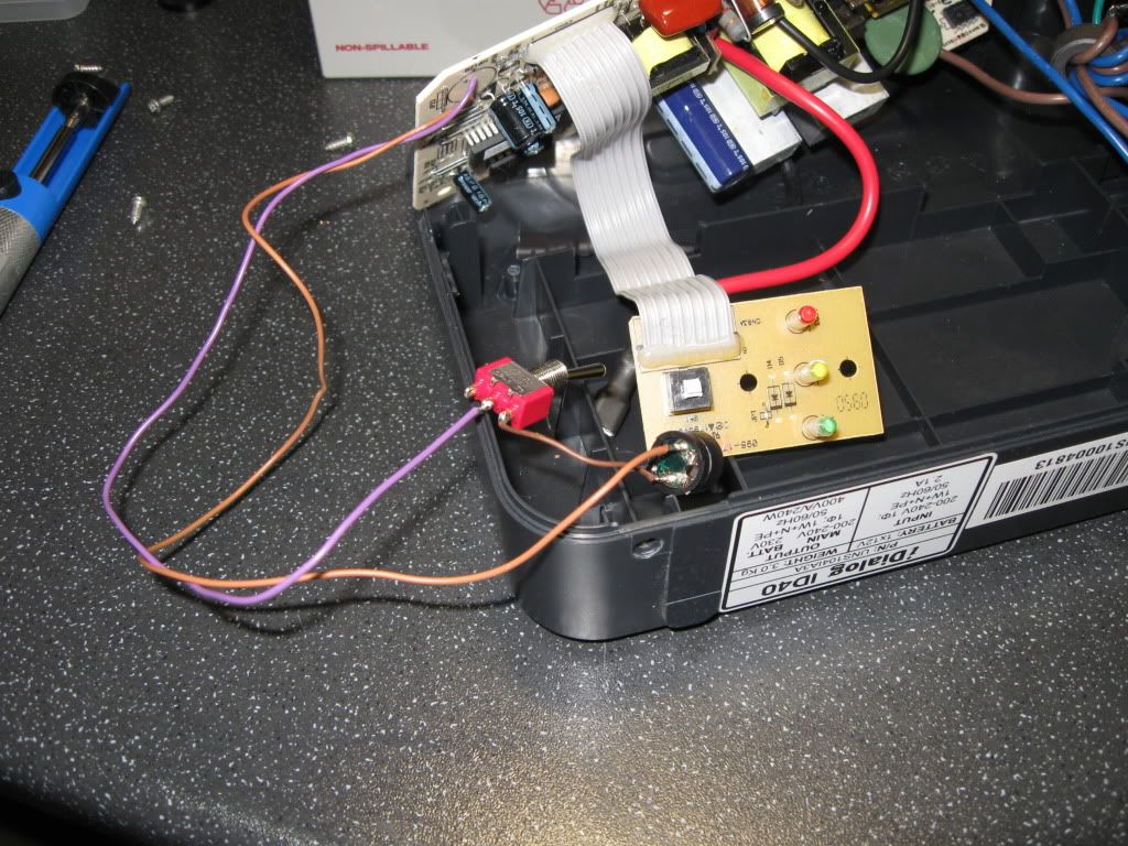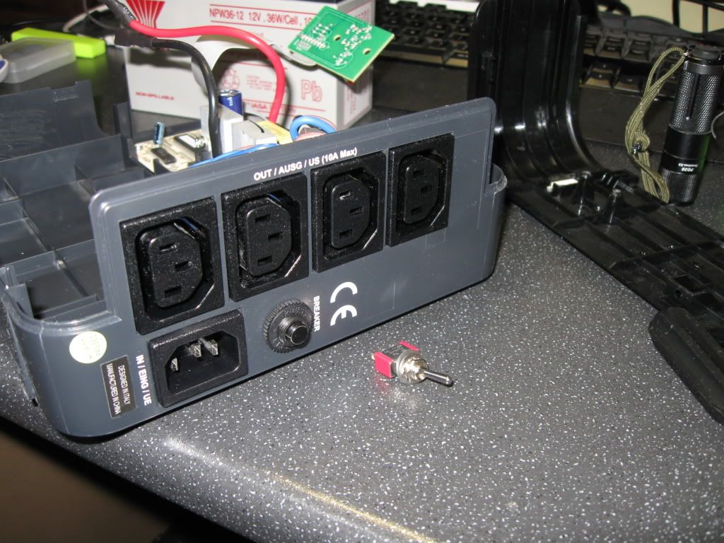 To get a good mornings sleep, rather than throw away a perfectly good UPS or rip out the buzzer, I retrofitted a toggle switch to turn the buzzer on or off. Because the buzzer was mounted on the main board I had to de-solder it and mount it somewhere else in order to install a switch.