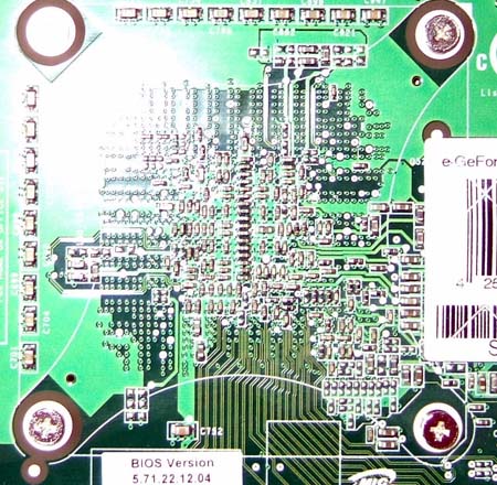 There's the bit of label off to the right, there's the screws for the heatsink, and there's the resistor arrangement beneath the GPU.