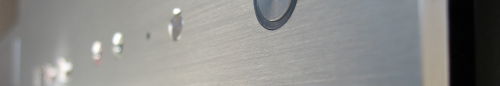 * Aluminum plate front bezel with Vacuum Fluorescent Display (VFD) and Volume Control to work with media center applications. Includes space for user-mounted IR Receiver