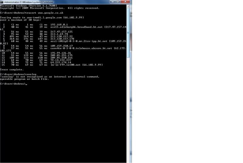 I contacted BT support earlier and told them about my tracert and ping results, to which the engineer replied that he knew nothing and that I needed to contact "dos" about the results the tracert gave. Can anybody shed any light on the issues I may have and any way i can convince BT that there is something wrong with my line. Pinging my router shouldn't display results like this and I doubt tracerts should take 14 hops, when people who live under a mile from me get 5.