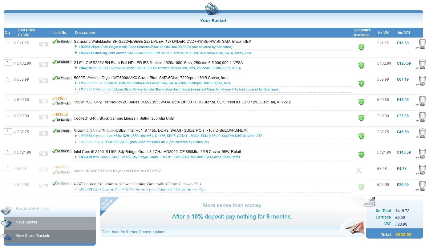 The 5850 isn't a bad card though so at least the £500 doesnt have to get a gcard or ram (although that's cheap anyway)