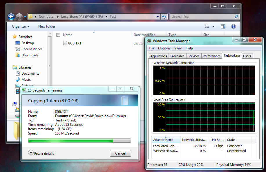 This is for anyone with a NAS setup. I'm looking at building at getting a NAS (WD Duo 4TB is on the shortlist at the moment) and wondering what sort of real world transfer speeds I can expect? For example how long would it take to transfer 2-3 GB folder assuming a wired connection between my PC to the router to the NAS? Would it be quicker if it was a 2-3 GB zipped file? How about a 4-5 GB movie?