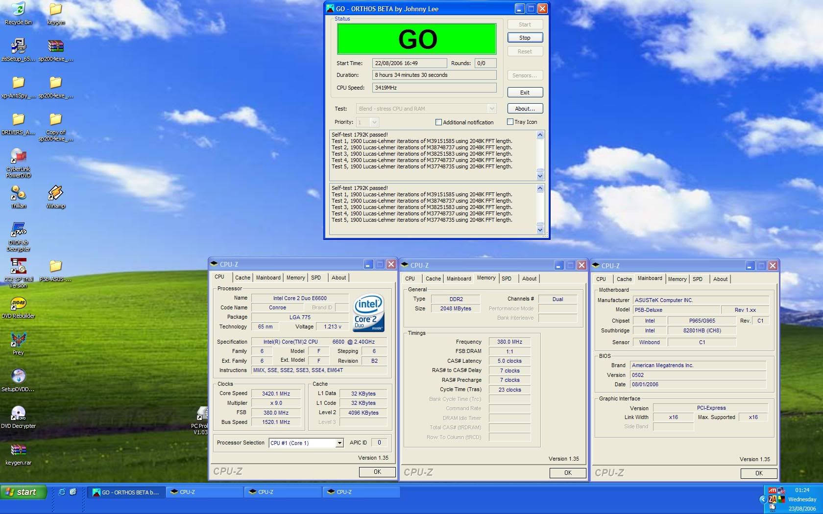 Just awaiting my RAM back from OCZ and the overclocking will commence here.....hopefully a new BIOS for the P5B will be avilable soon as well. Seems 0507 is messed up (looks like you know as your running 0502 beta) and I expect the next release to really make this board fly