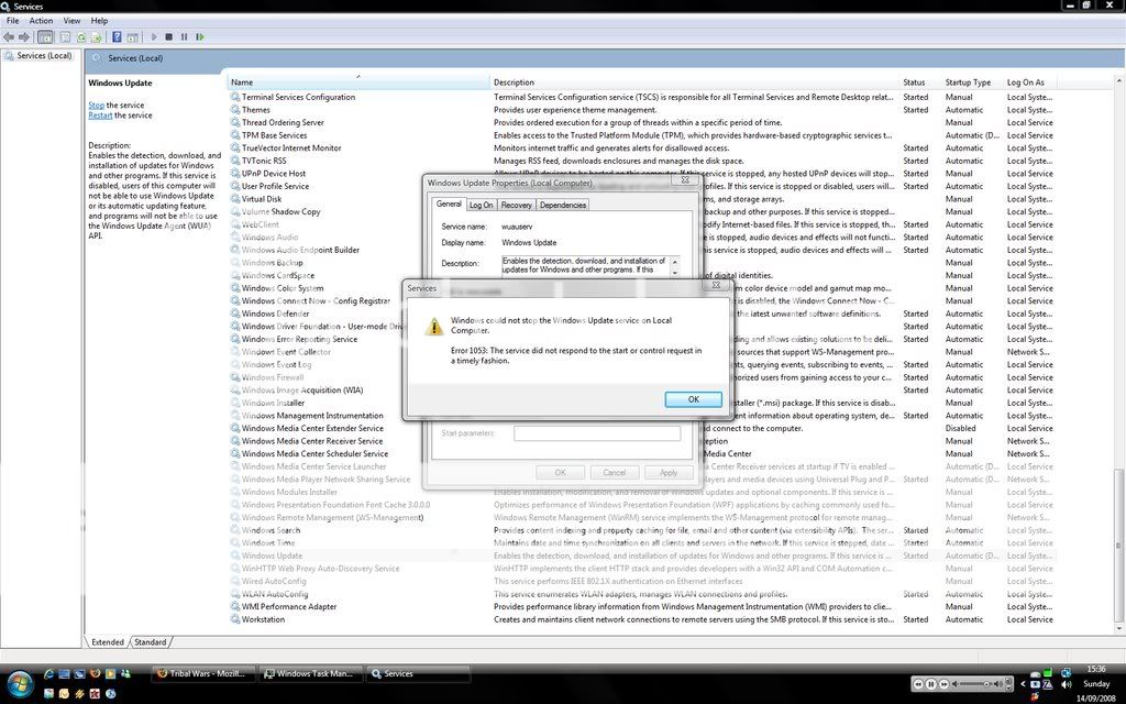 Ok, just an update. I thought that i would try starting and stopping the windows update service.....this happened