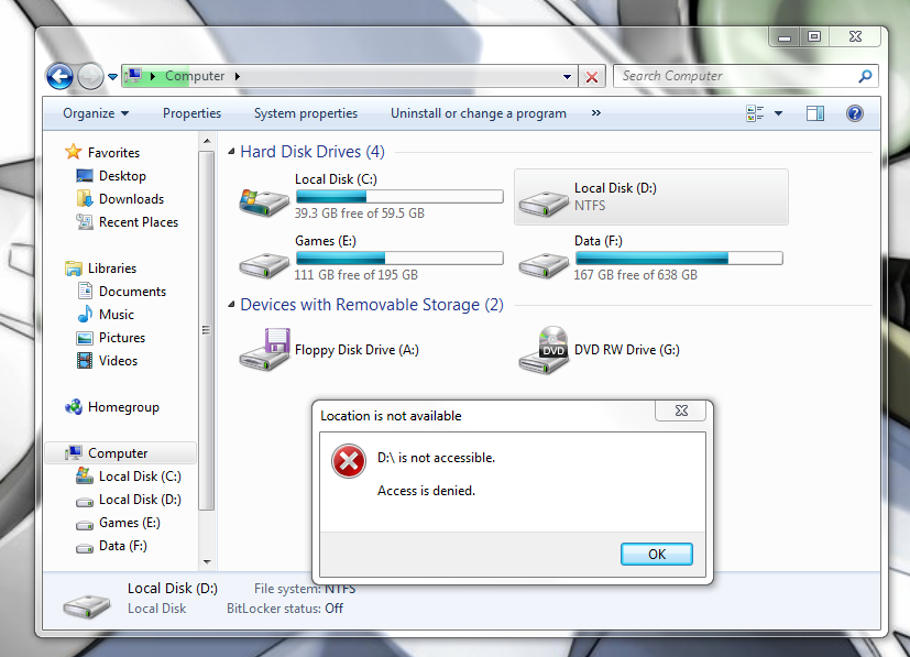 When I try to access the partition itself from Win 7 on my SSD I get this: